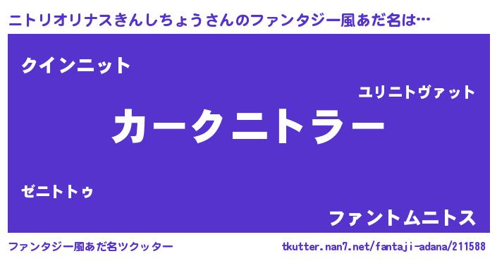 | 伝説のあだ名 | 『救世主となる占い師ニトリオリナスきんしちょう』 |