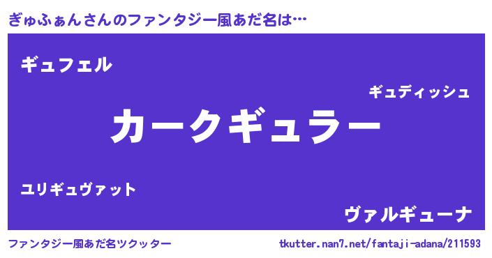 | 男性向けラノベタイトル風あだ名 | 『緋弾のギュファン』『ぎゅふぁんの憂鬱』 |