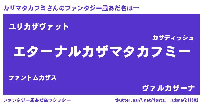 | 意味不明あだ名 | 『カザマタカフミフォーエバー』 |