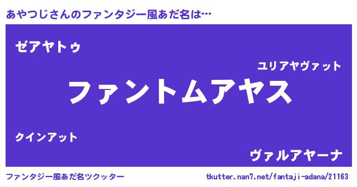 | 男性向けラノベタイトル風あだ名 | 『あやつじの嫁は女の子じゃないと思った?』 |