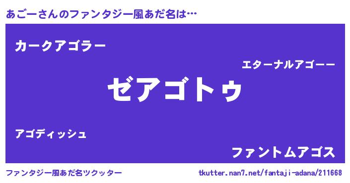| 意味不明あだ名 | 『自称あごー』『とにかく怪しいあごー』 |