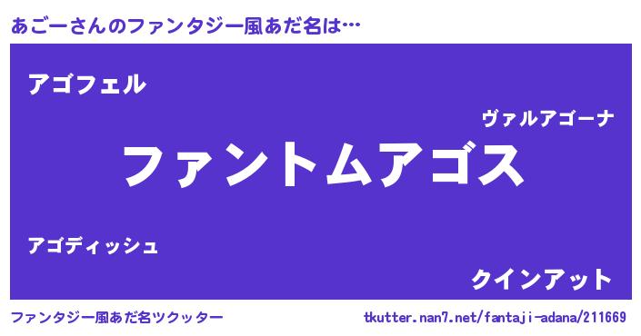 | 女子向けラノベタイトル風あだ名 | 『あごー様がみてる』『死神あごーの再婚』 |