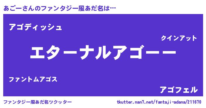| 意味不明あだ名 | 『あごーフォーエバー』『永久保存あごー』 |