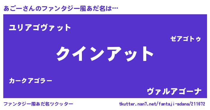 | 男性向けラノベタイトル風あだ名 | 『おまえをオタクにしてやるから、俺をあごーにしてくれ! 』 |