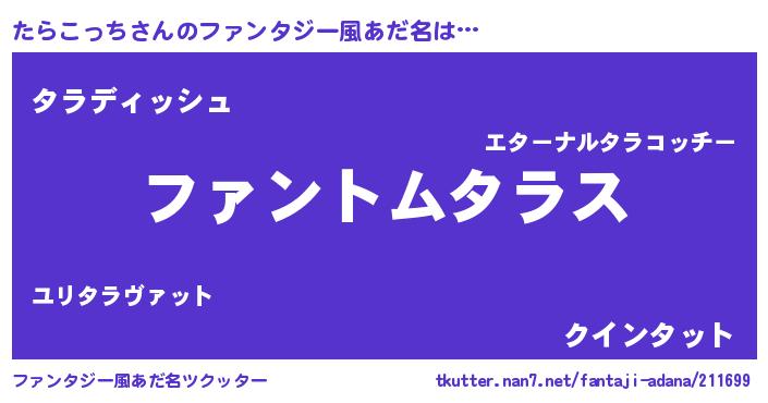 | ヒーロー風カッコイイあだ名 | 『黄金騎士タラ』『ネオタラコッチ』 |
