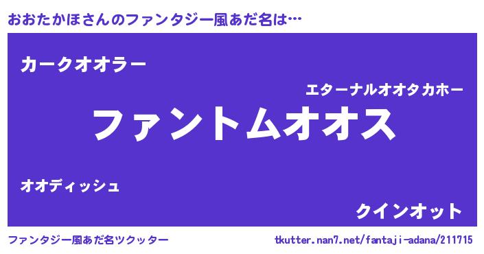 | ヒーロー風カッコイイあだ名 | 『魔戒騎士オオ』『愛の使者おおたかほ』 |