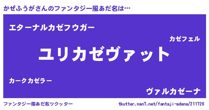 | 男性向けラノベタイトル風あだ名 | 『かぜふうが~年齢イコール彼女いない歴の魔法使い~』 |