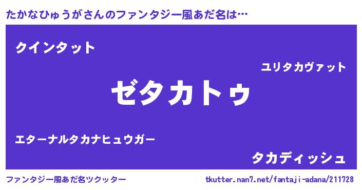 | 男性向けラノベタイトル風あだ名 | 『Re:たかなひゅうがから始める異世界生活』 |