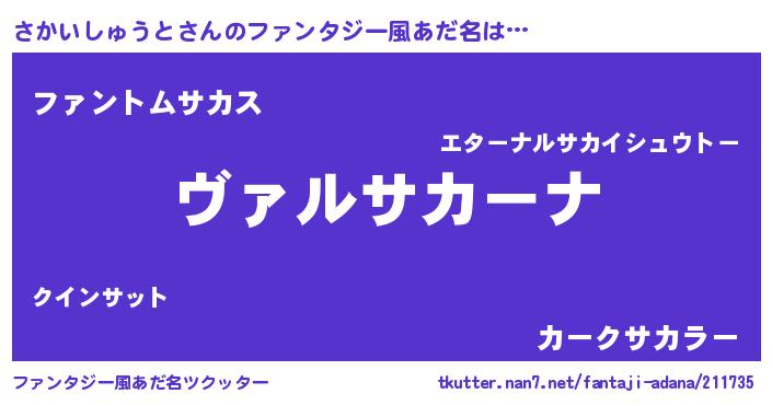 | 意味不明あだ名 | 『住所不定無職さかいしゅうと(3歳)』 |