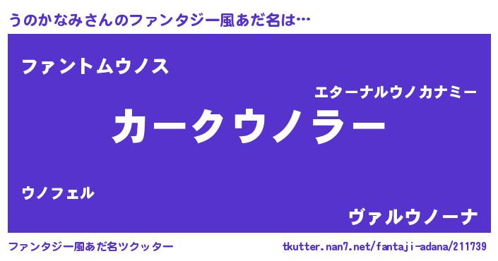 | 欧米人風あだ名 | 『うのかなみ・ステッグマイヤー』 |