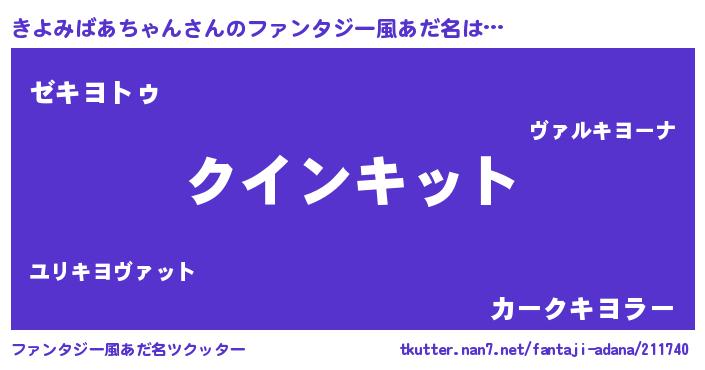 | 男性向けラノベタイトル風あだ名 | 『ノーゲーム・ノーキヨミバアチャン』 |