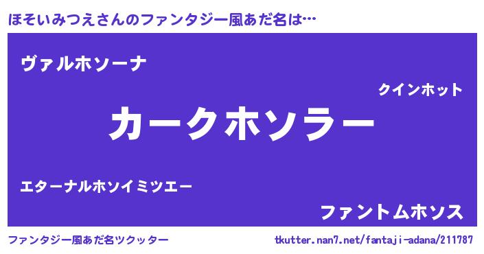 | 欧米人風あだ名 | 『ほそいみつえ・ステッグマイヤー』 |