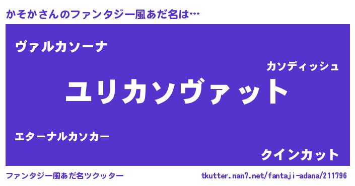| 胡散臭い通販商品みたいなあだ名 | 『あなたにだけ特別に提供する100年もののヴィンテージワイン…その名も「かそか」』 |