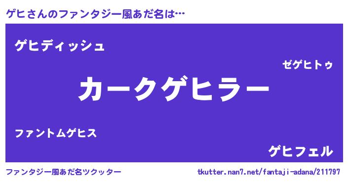 | ヒーロー風カッコイイあだ名 | 『ネオゲヒ』『スーパーゲヒ』 |