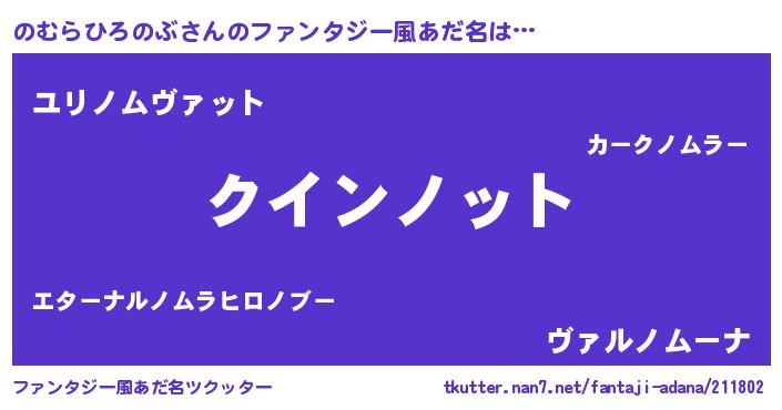 | 女子向けラノベタイトル風あだ名 | 『のむらひろのぶ夫妻のなれそめ』 |