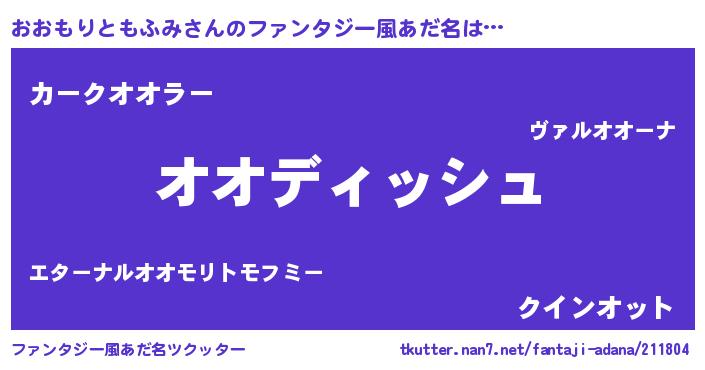 | 女子向けラノベタイトル風あだ名 | 『異世界でカフェおおもりともふみを開店しました。』 |