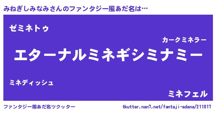 | 意味不明あだ名 | 『みねぎしみなみフォーエバー』 |