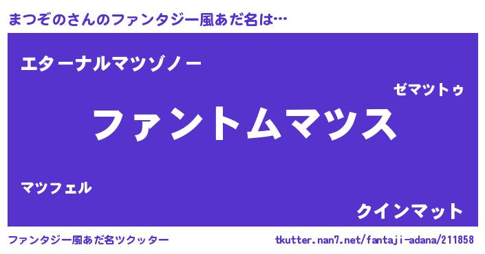 | 男性向けラノベタイトル風あだ名 | 『まつぞのに滅ぼされるだけの簡単なお仕事です』 |
