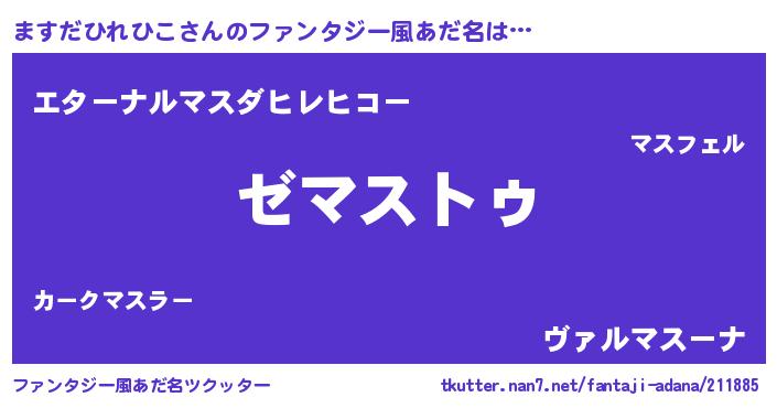 | 男性向けラノベタイトル風あだ名 | 『Re:ますだひれひこから始める異世界生活』 |