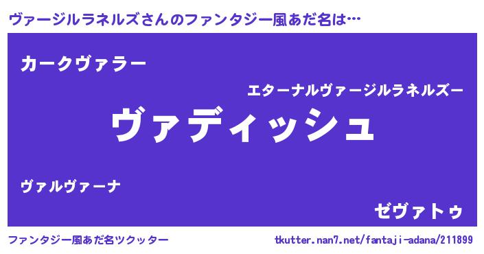 | 女子向けラノベタイトル風あだ名 | 『異世界で失敗しない100のヴァージルラネルズ』 |
