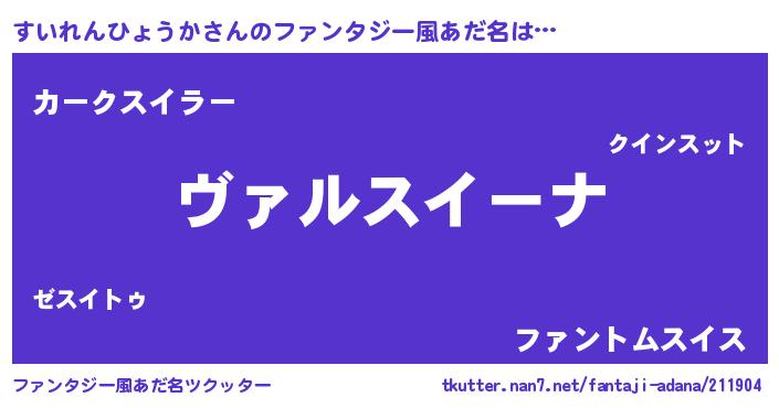 | 男性向けラノベタイトル風あだ名 | 『魔弾の王とすいれんひょうか』 |