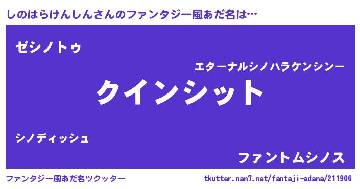 | 男性向けラノベタイトル風あだ名 | 『しのはらけんしんに滅ぼされるだけの簡単なお仕事です』 |