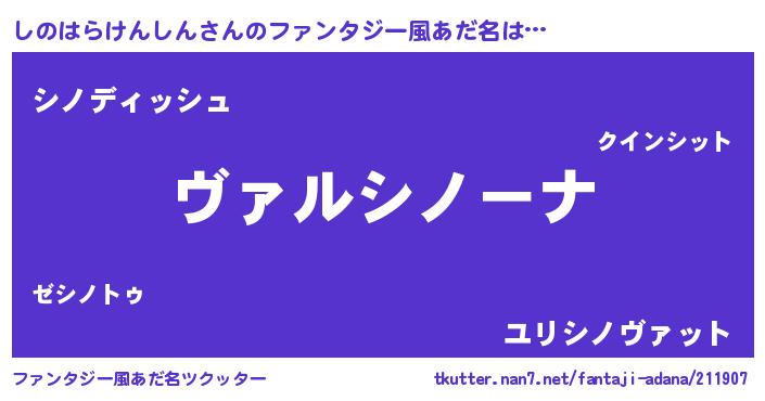| 意味不明あだ名 | 『住所不定無職しのはらけんしん(5歳)』 |