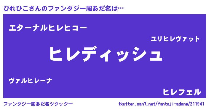 | 男性向けラノベタイトル風あだ名 | 『ひれひこに滅ぼされるだけの簡単なお仕事です』 |