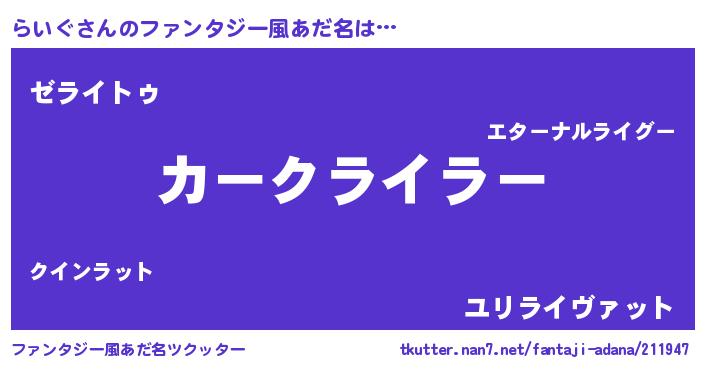 | ヘコむあだ名 | 『豆乳』『らいぐ(震え声)』 |