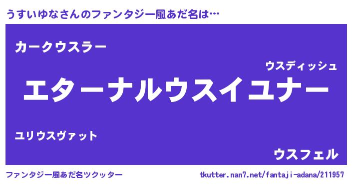 | 意味不明あだ名 | 『うすいゆなフォーエバー』 |