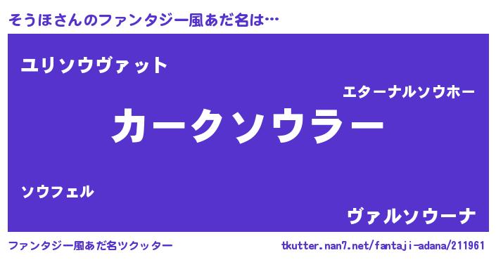 | ヒーロー風カッコイイあだ名 | 『仮面ソウダー』『ウルトラそうほマン』 |