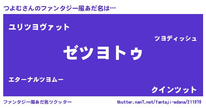 | 女子向けラノベタイトル風あだ名 | 『つよむなんてお断りですっ。』 |