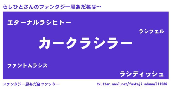 | ヒーロー風カッコイイあだ名 | 『ウルトラらしひとマン』『ネオラシヒト』 |