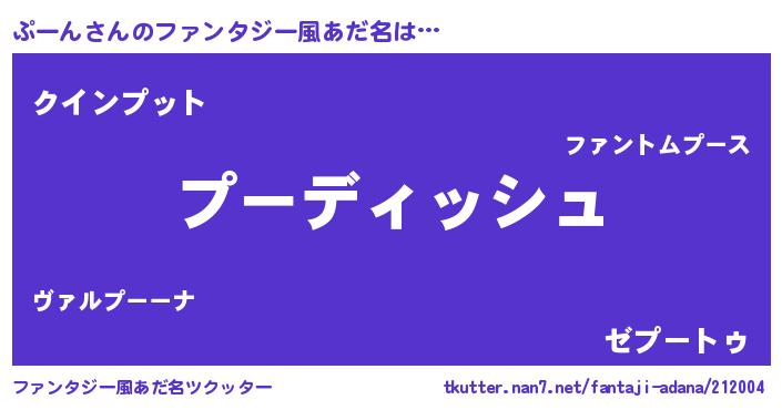 | 男性向けラノベタイトル風あだ名 | 『ぷーんという概念が存在しない退屈な世界 』 |