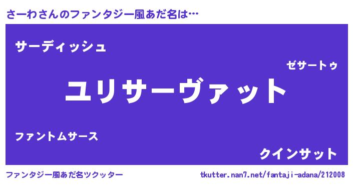 | 女子向けラノベタイトル風あだ名 | 『さーわの玉の輿計画!』『闇のさーわ』 |
