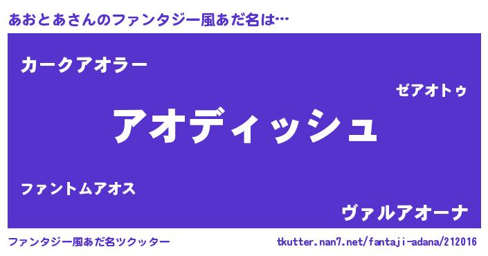 | ヒーロー風カッコイイあだ名 | 『ネオアオトア』『仮面アオダー』 |