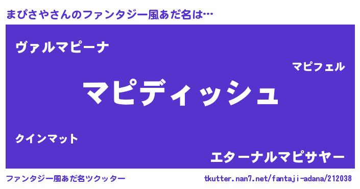 | 欧米人風あだ名 | 『ダルビッシュまぴさや』 |