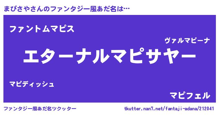 | ポケモン風あだ名 | 『マピサダネ』『ヒマピサヤ』 |
