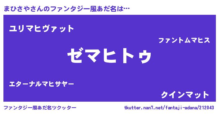 | ヒーロー風カッコイイあだ名 | 『ウルトラ戦士マヒサヤ』『幻影騎士マヒ』 |