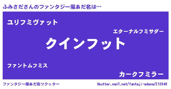 | 男性向けラノベタイトル風あだ名 | 『ノーゲーム・ノーフミサダ』 |