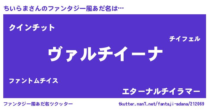 | 意味不明あだ名 | 『住所不定無職ちいらま(2歳)』 |