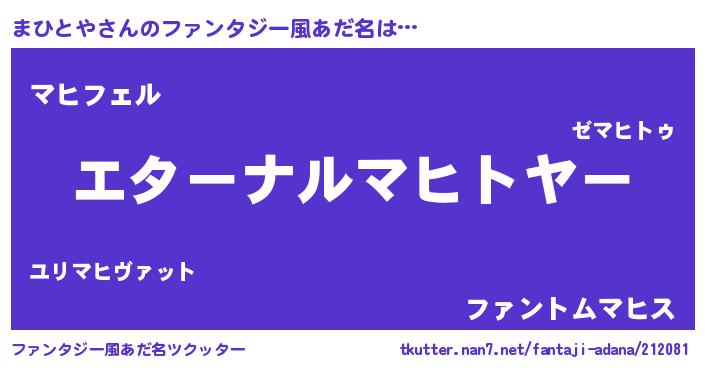 | 意味不明あだ名 | 『まひとやフォーエバー』『自称まひとや』 |