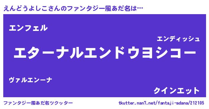 | 欧米人風あだ名 | 『えんどうよしこクリステル』 |