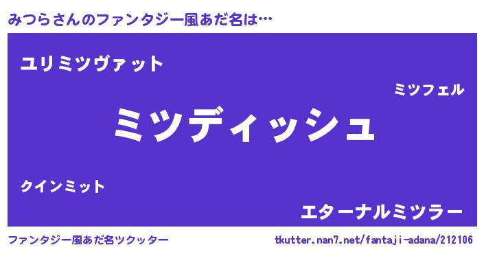 | 男性向けラノベタイトル風あだ名 | 『みつらという概念が存在しない退屈な世界 』 |
