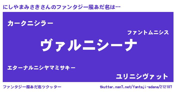 | 胡散臭い通販商品みたいなあだ名 | 『あなたにだけ特別に提供する世界で10本だけ現存している希少なブランデー…その名も「にしやまみさき」』 |