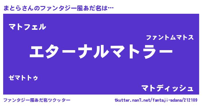 | 意味不明あだ名 | 『まとらフォーエバー』『ペロリンまとら』 |