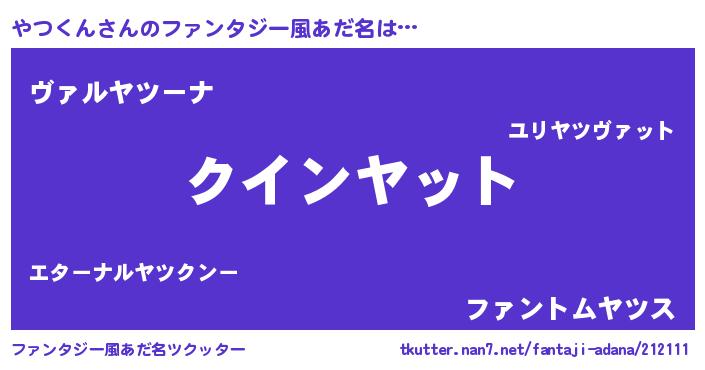 | 男性向けラノベタイトル風あだ名 | 『ノーゲーム・ノーヤツクン』 |