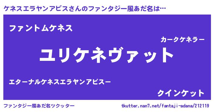 | 男性向けラノベタイトル風あだ名 | 『ケネスエラヤンアビススレイヤー』 |