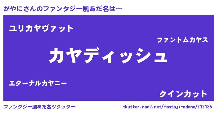 | 欧米人風あだ名 | 『ダルビッシュかやに』『ダニエルかやに』 |