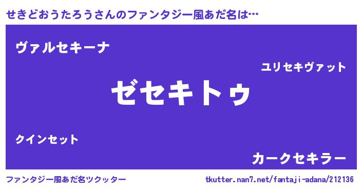 | 意味不明あだ名 | 『自称せきどおうたろう』 |